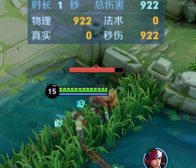 1技能有两段伤害,推人和上挑伤害完全相同,因此1技能的面板伤害并不算很高,哪怕出了暗影战斧+破军也只能打韩信人偶922点伤害,属实不够看。